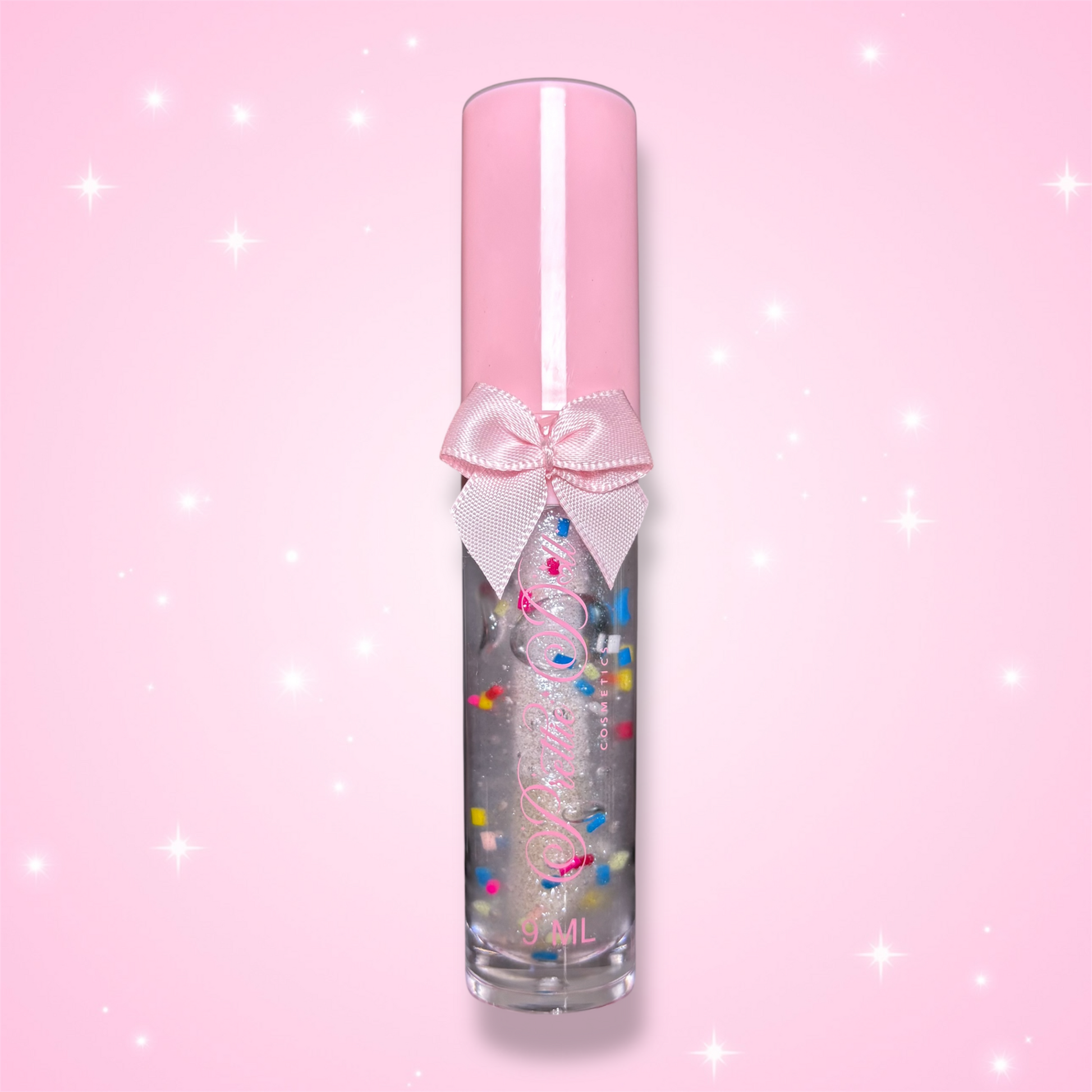 Ingredients: Hydrogenated Polyisobutene, Ethylene/Propylene/Styrene Copolymer, Butylene/Ethylene/Styrene Copolymer, Pentaerythrityl Tetra-di-t-butyl Hydroxyhydrocinnamate. Hydrogenated Polyisobutene, Caprylic/Capric Triglyceride, Prunus Amygdalus Dulcis (Sweet Almond) Oil, Tocopheryl Acetate (Vitamin E), Caprylyl Glycol, Phenoxyethanol, Hexylene Glycol, Phenoxyethanol, Caprylyl Glycol, Potassium Sorbate, Hexylene Glycol, Phenoxyethanol, Potassium Sorbate, Octyldodecanol, Cosmetic Grade Glitter, Cosmetic Grade Scent, Sucralose Sweetener